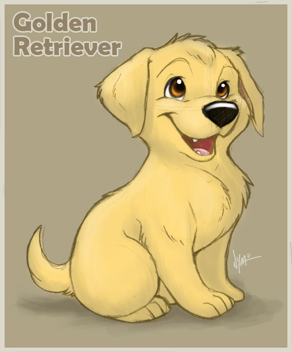 How To Draw A Cartoon Golden Retriever Puppy Dog Drawing